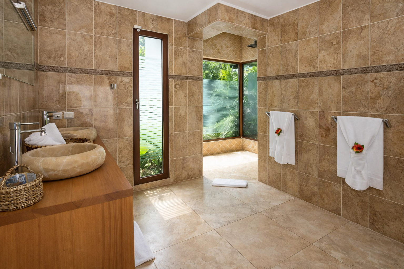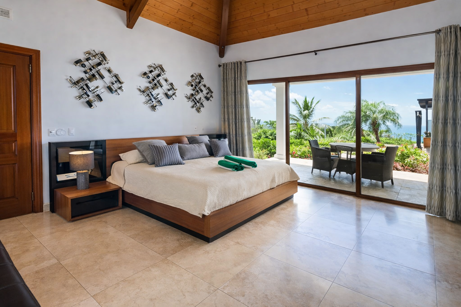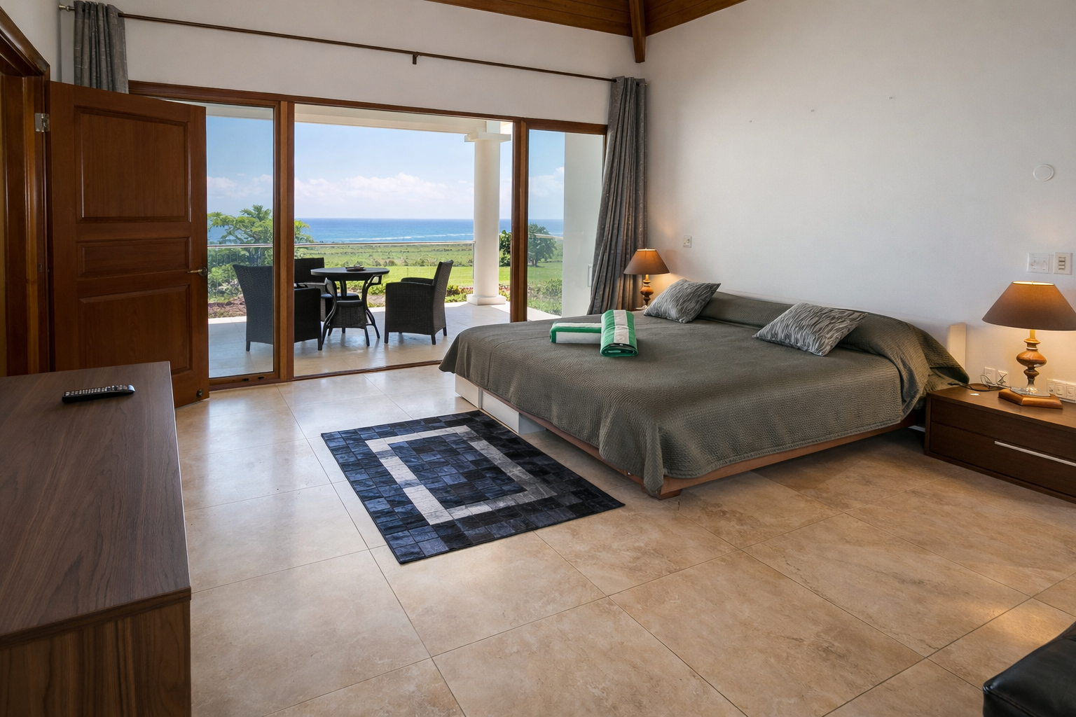 Les 4 chambres, toutes ouvertes sur la terrasse extérieure et la piscine, offrent des vues mer spectaculaires et un confort absolu. Chacune dispose de sa salle d’eau, avec en plus des douches extérieures pour une expérience tropicale unique, en harmonie avec la nature. Les voyageurs bénéficient d’un accès complet à la villa : cuisine entièrement équipée, salon élégant avec système Bose et télévision, barbecue côté piscine, et bien sûr la piscine et jardin.