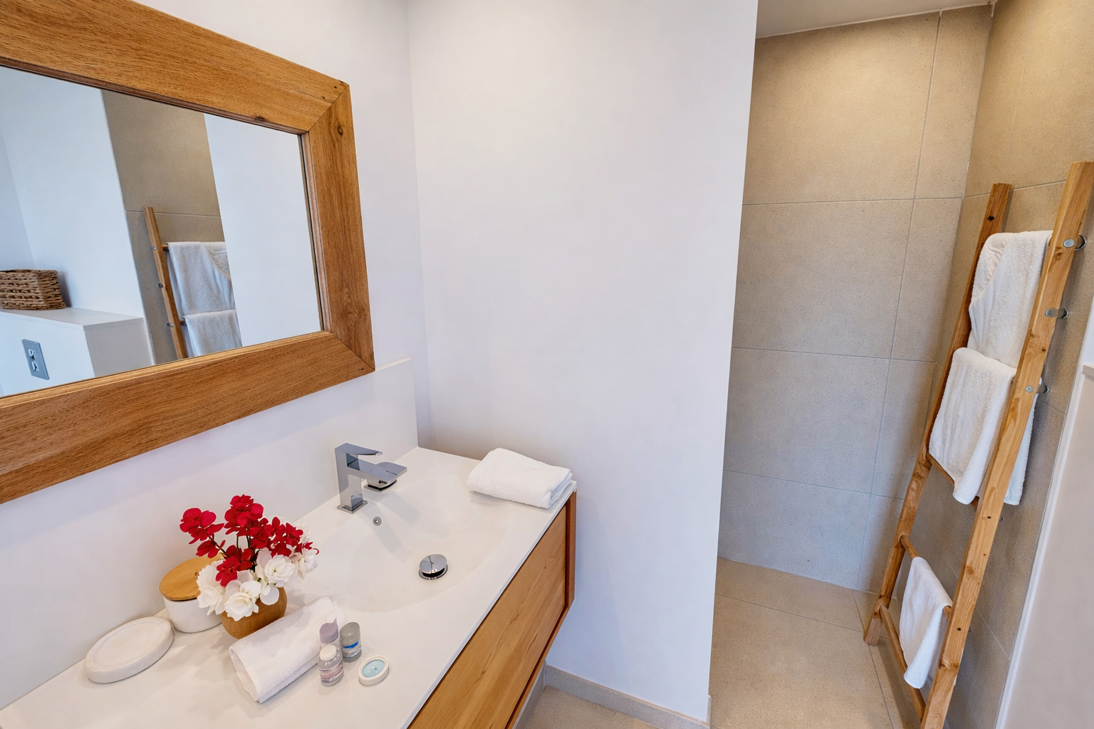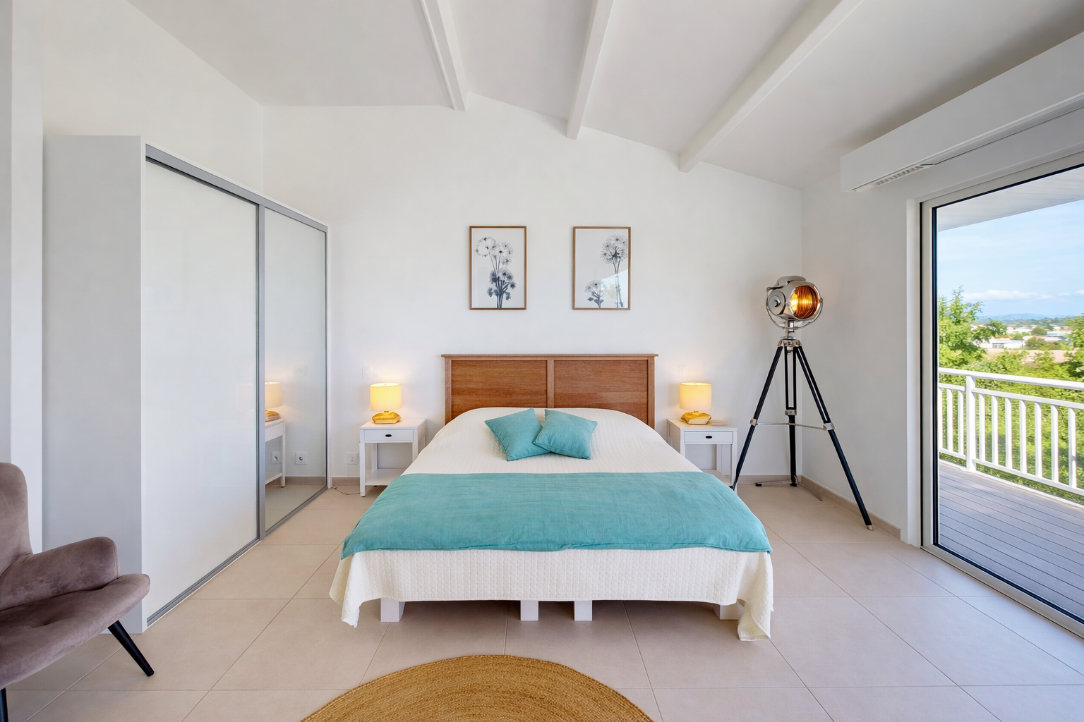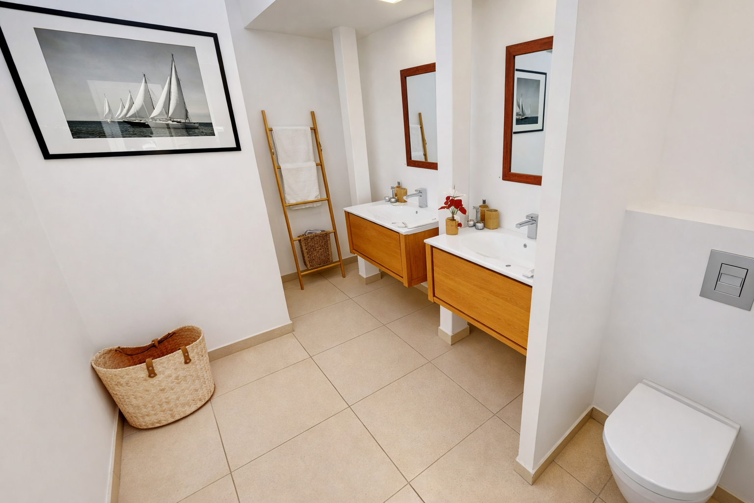 Ouverte sur une magnifique vue mer, la villa offre des espaces généreux et baignés de lumière. Le vaste séjour, convivial et harmonieux, s’ouvre sur une terrasse accueillante, parfaite pour partager des moments privilégiés face à l’horizon. Les trois chambres, chacune dotée de sa salle d’eau privative, ont été pensées comme de véritables cocons, alliant intimité, confort haut de gamme et atmosphère apaisante.