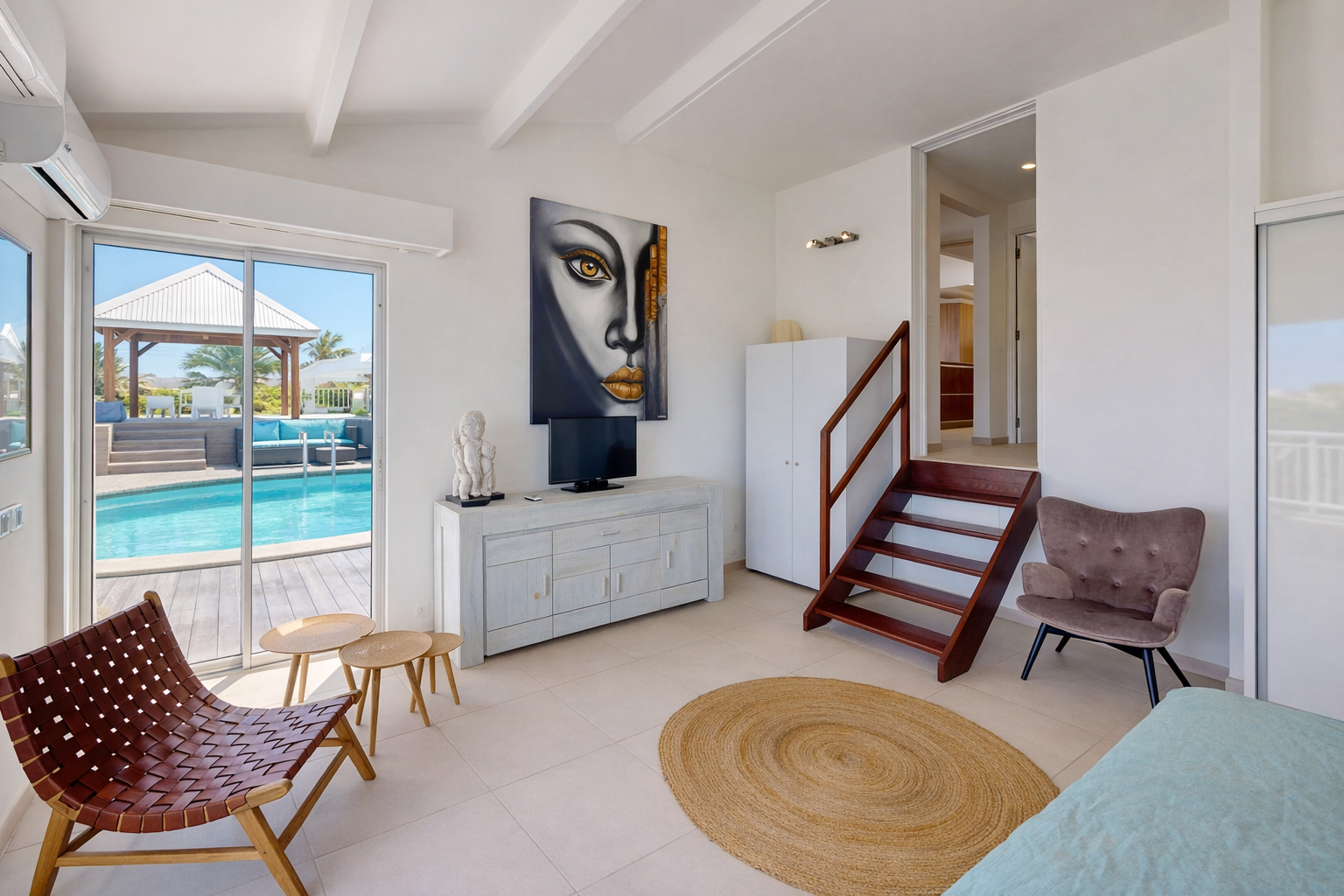 Alliance subtile entre emplacement d’exception et ambiance détendue, la Villa Galapagos est l’adresse idéale pour des vacances en famille ou entre amis, à la découverte du cadre unique et typique du village d’Orient Bay.
