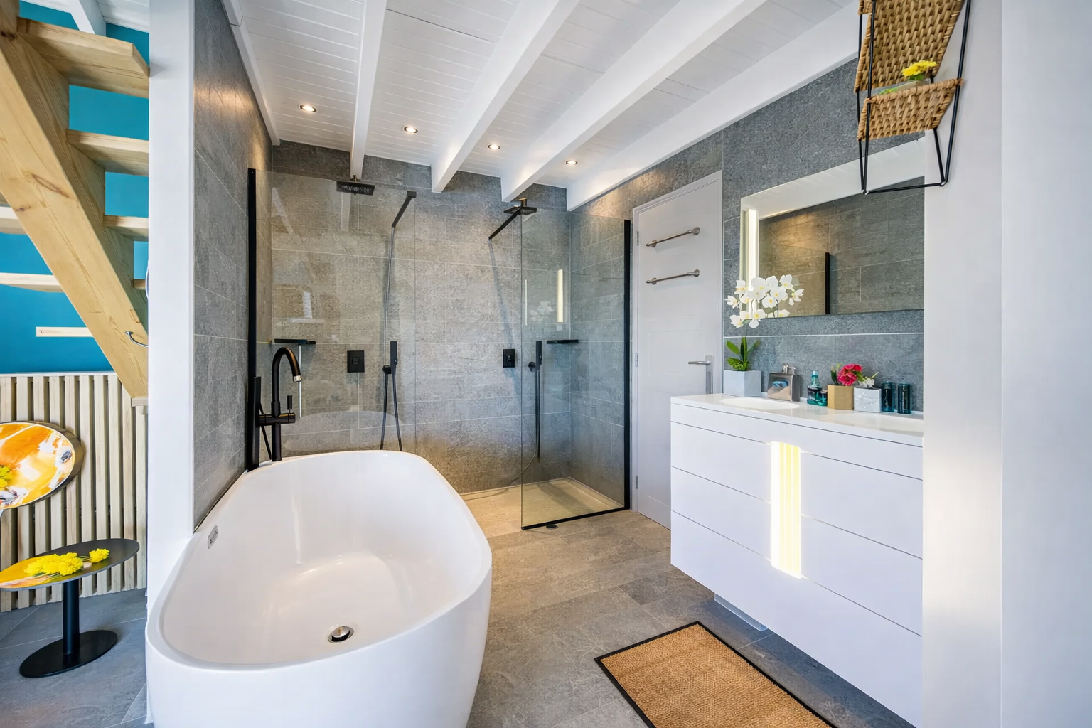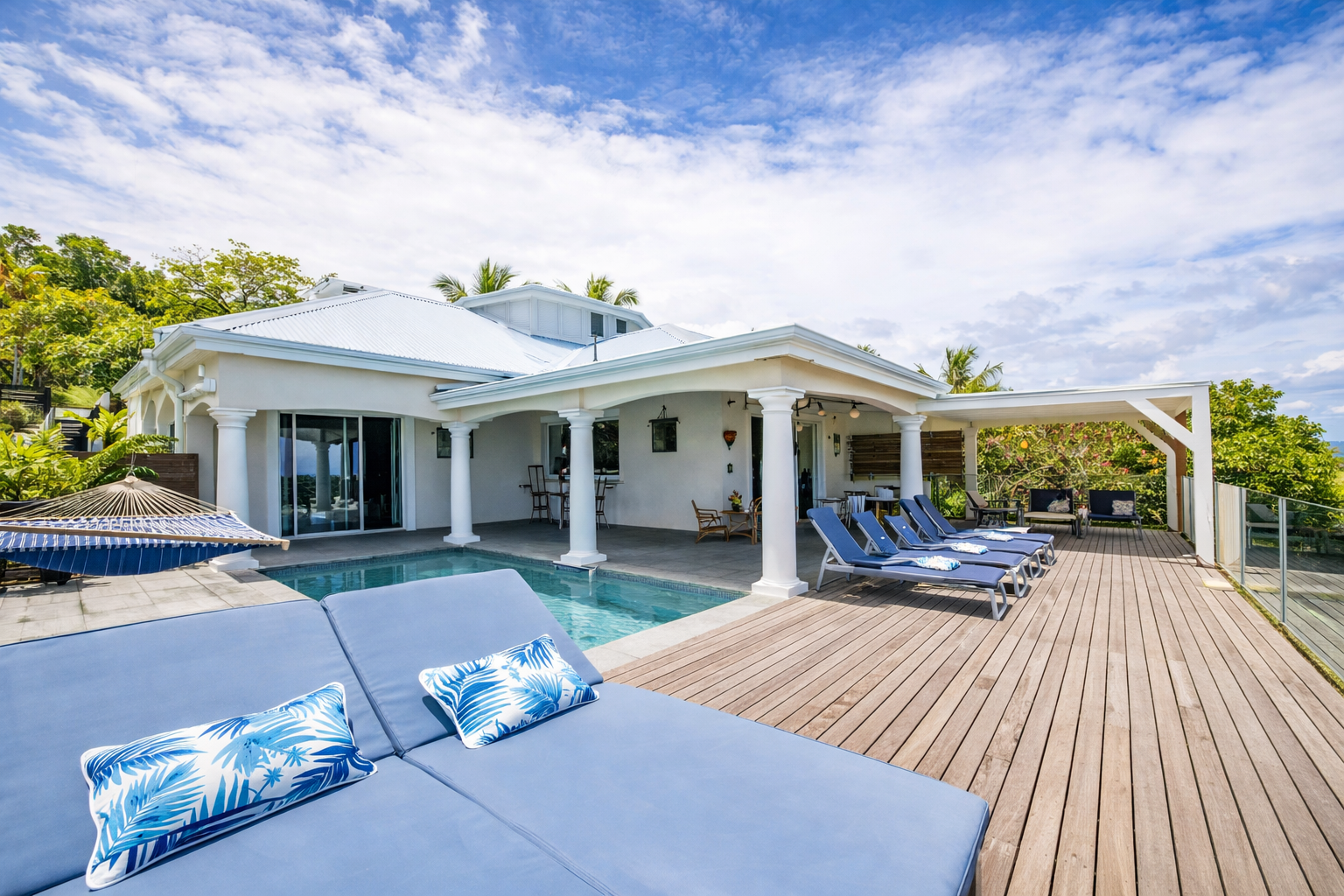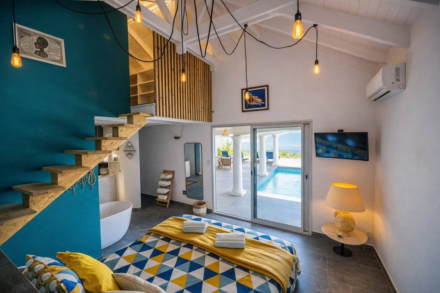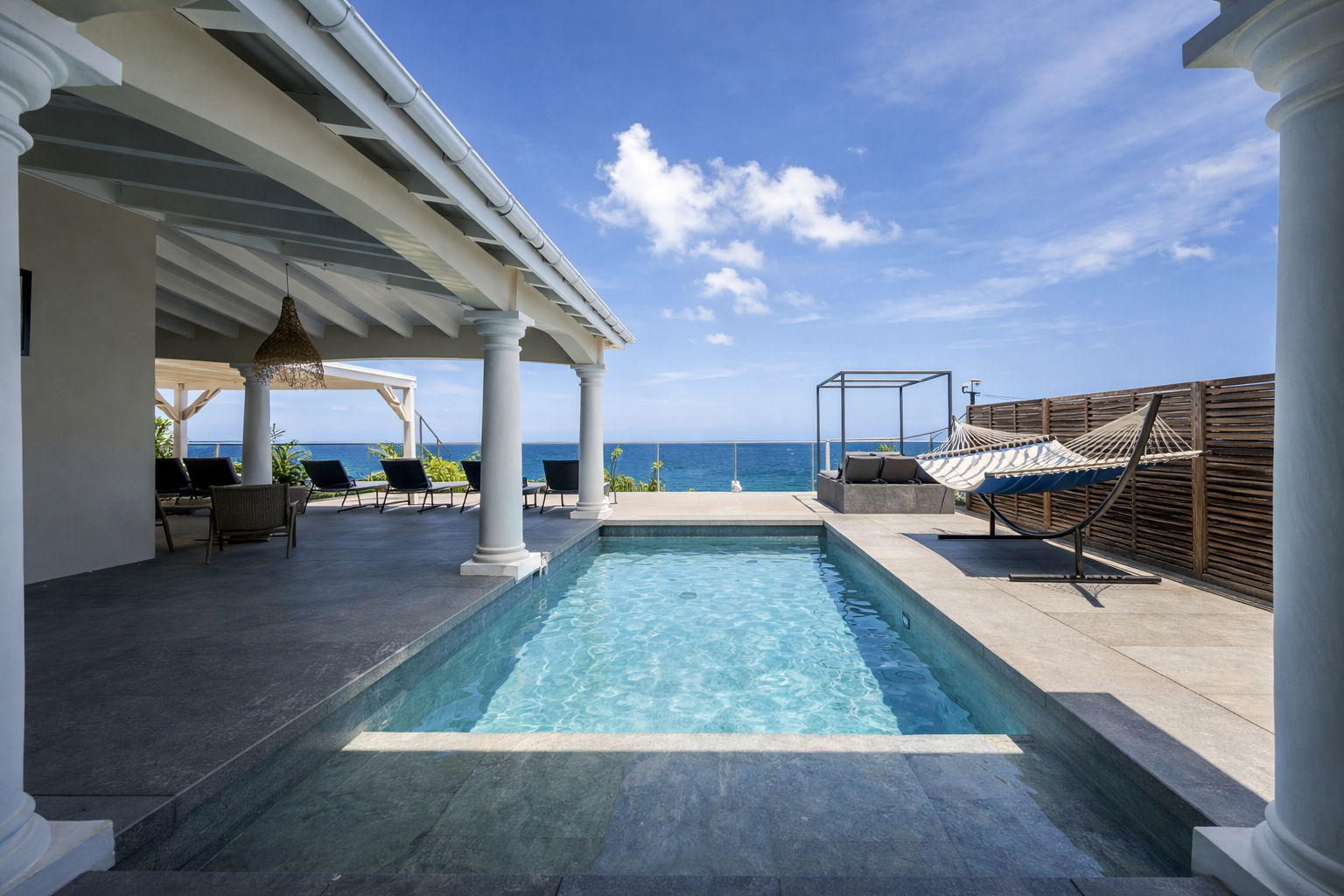 À l’extérieur, la terrasse avec piscine privée, chauffée en hiver, invite à la détente face à la mer. C’est l’endroit parfait pour se relaxer, profiter du soleil des Caraïbes et admirer de magnifiques couchers de soleil dans un cadre paisible et préservé.